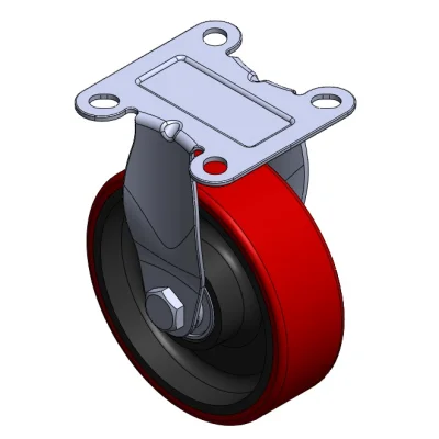 Bánh xe cố định, khung dập liền khối; rung bề mặt, thiết bị lắp tấm đế; lõi bánh xe bằng gang, bề mặt bánh xe bằng polyurethane chất lượng cao; màu đỏ, vòng bi bánh xe—vòng bi chính xác.