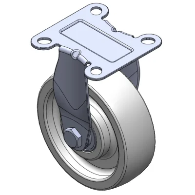 Bánh xe cố định, khung dập liền khối; rung bề mặt, thiết bị lắp tấm đế; lõi bánh xe và bề mặt bánh xe bằng nhựa nhiệt dẻo; màu trắng; ổ trục bánh xe—ổ trục bi chính xác.