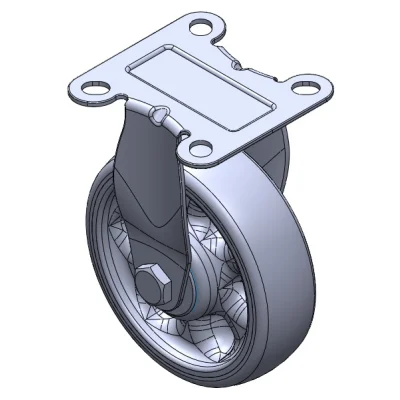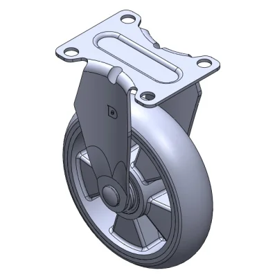 Bánh xe cố định, khung dập liền khối — lỗ dụng cụ Rung bề mặt, thiết bị lắp đặt tấm đế Lõi bánh xe bằng nhôm, bề mặt bánh xe bằng polyurethane chất lượng cao Màu xám, ổ trục bánh xe — ổ bi chính xác.
