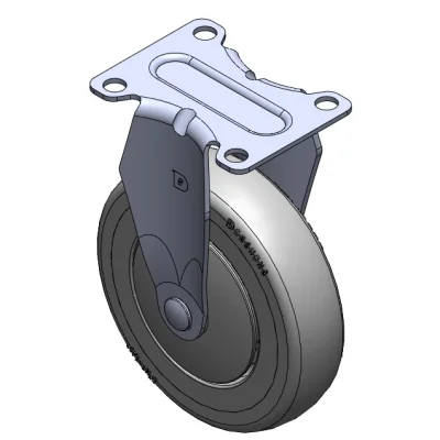 Bánh xe cố định, khung dập liền khối — lỗ dụng cụ Bề mặt rung, thiết bị lắp đặt tấm đế Lõi bánh xe bằng polypropylene chống va đập, bề mặt bánh xe bằng nhựa nhiệt dẻo đàn hồi (TPR) Màu xám, ổ trục bánh xe — ổ bi chính xác.