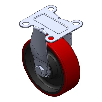 Bánh xe cố định, khung dập liền khối; rung bề mặt, thiết bị lắp tấm đế; lõi bánh xe bằng gang, bề mặt bánh xe bằng polyurethane chất lượng cao; màu đỏ, vòng bi bánh xe—vòng bi chính xác.