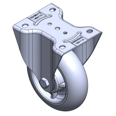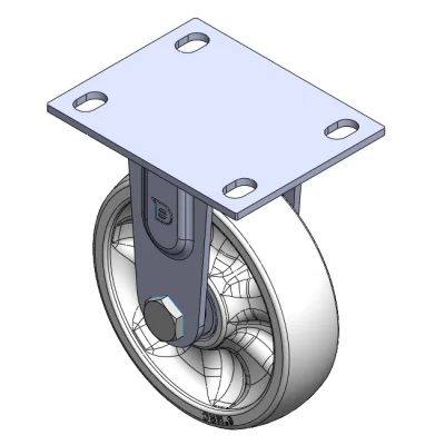 Bánh xe cố định, khung thép hàn; rung bề mặt, thiết bị lắp tấm đế; lõi bánh xe và bề mặt bánh xe bằng nhựa nhiệt dẻo gia cố; màu trắng; ổ trục bánh xe—ổ trục bi chính xác.
