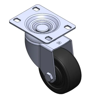 Bánh xe di động, đế được tán đinh và dập khuôn – thiết kế đục lỗ chất lượng cao. Chống rung bề mặt, thiết bị gắn đế. Lõi và bề mặt bánh xe bằng cao su đàn hồi chất lượng cao. Bánh xe màu đen, có ống trung tâm.