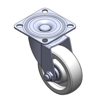 活動式腳輪,底板鉚合沖壓腳架 表面振動,底板式安裝裝置 熱可塑性塑料輪芯、輪面 白色,輪子軸承—精密滾珠。