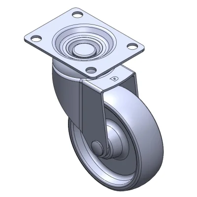 活動式腳輪,底板鉚合沖壓腳架 表面振動,底板式安裝裝置 耐衝擊聚丙烯輪芯,熱塑性彈性體(TPR)輪面 灰色,輪子—中管式。