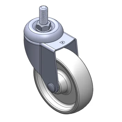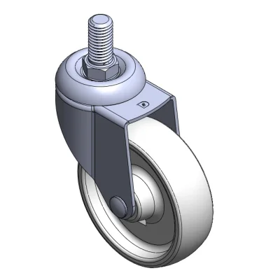 活動式腳輪,牙心鉚合沖壓腳架—1/2"-12牙 表面振動,絲扣式安裝裝置 熱可塑性塑料輪芯、輪面 白色,輪子—中管式。