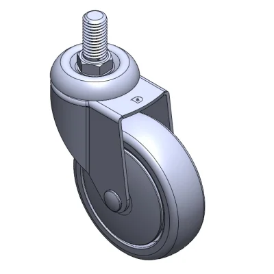 活動式腳輪,牙心鉚合沖壓腳架—1/2"-12牙 表面振動,絲扣式安裝裝置 耐衝擊聚丙烯輪芯,熱塑性彈性體(TPR)輪面 灰色,輪子軸承—精密滾珠。