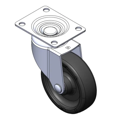活動式腳輪,底板鉚合沖壓腳架—儀器孔 表面振動,底板式安裝裝置 聚丙烯輪芯、輪面 黑色,輪子—中管式。