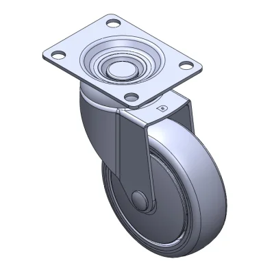活動式腳輪,底板鉚合沖壓腳架—儀器孔 表面振動,底板式安裝裝置 耐衝擊聚丙烯輪芯,熱塑性彈性體(TPR)輪面 灰色,輪子—中管式。