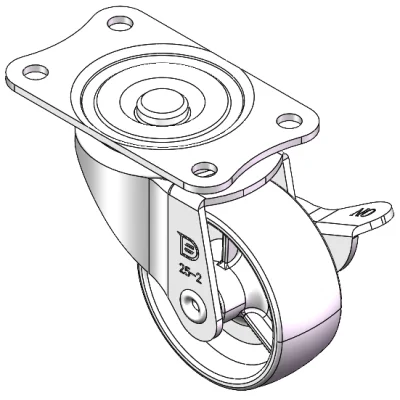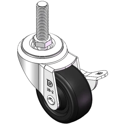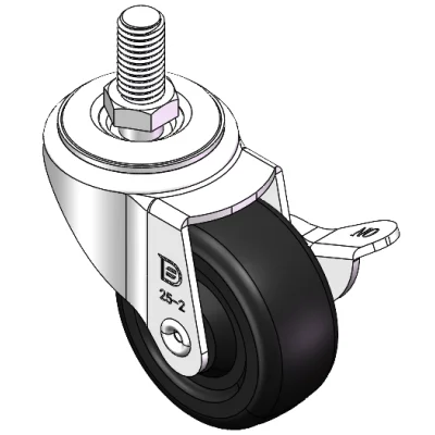 配有側(輪)煞式,鎖定係統的腳輪。牙心鉚合沖壓腳架—M10-P1.5