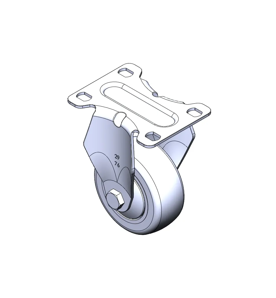 固定式腳輪,一體成型沖壓腳架—高級孔 表面電鍍,底板式安裝裝置 耐衝擊聚丙烯輪芯,熱塑性彈性體(TPR)輪面 深灰色,輪子軸承—精密滾珠。
