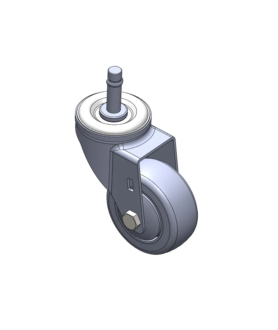 活動式腳輪,插心鉚合沖壓腳架—Ø11x38L 表面鍍鋅,插心式安裝裝置,附銅扣 耐衝擊聚丙烯輪芯,熱塑性彈性體(TPR)輪面 深灰色,輪子軸承—精密滾珠。
