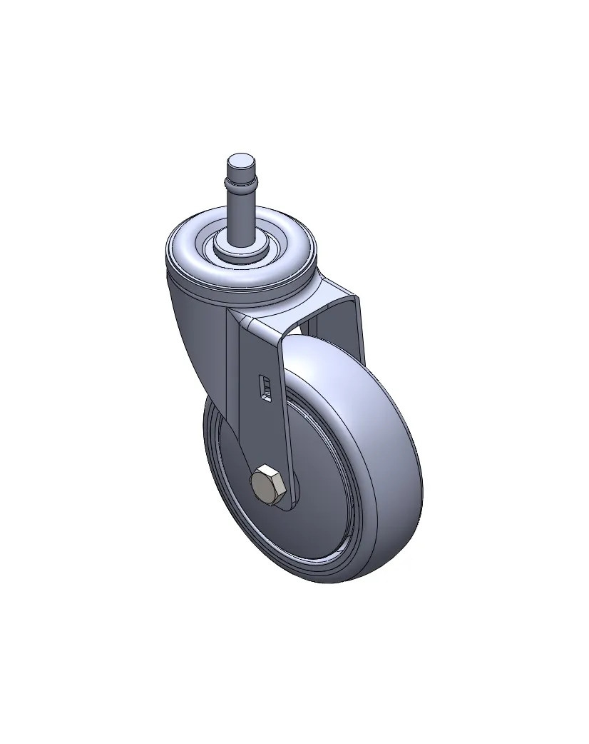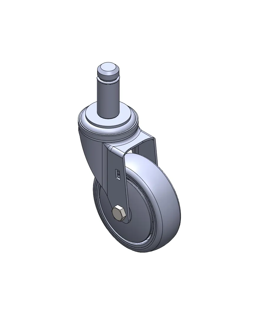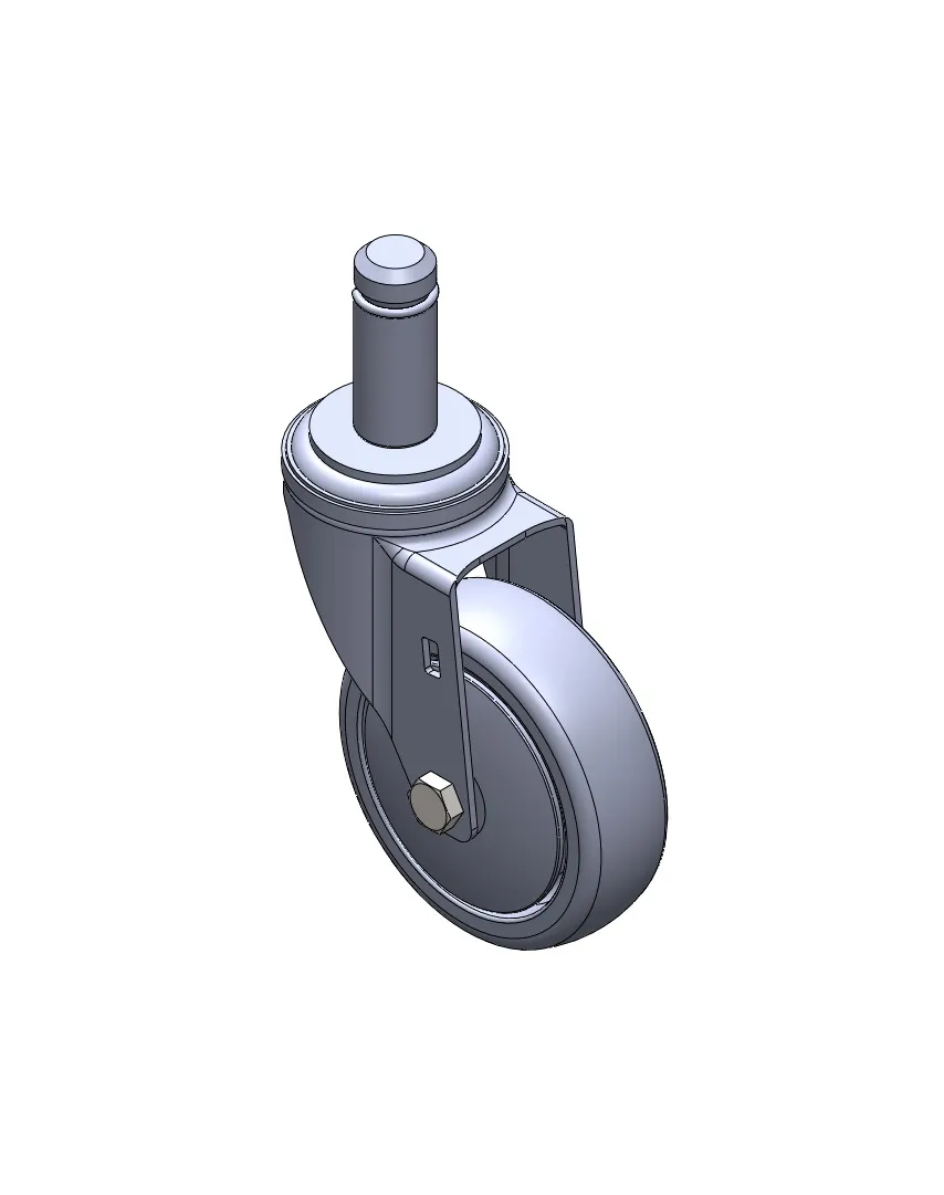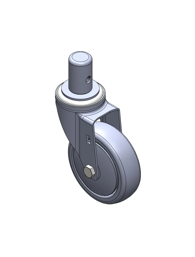 活動式腳輪,插心鉚合沖壓腳架—Ø28x45L 表面鍍鋅,插心式安裝裝置,M8孔 耐衝擊聚丙烯輪芯,熱塑性彈性體(TPR)輪面 深灰色,輪子—中管式。