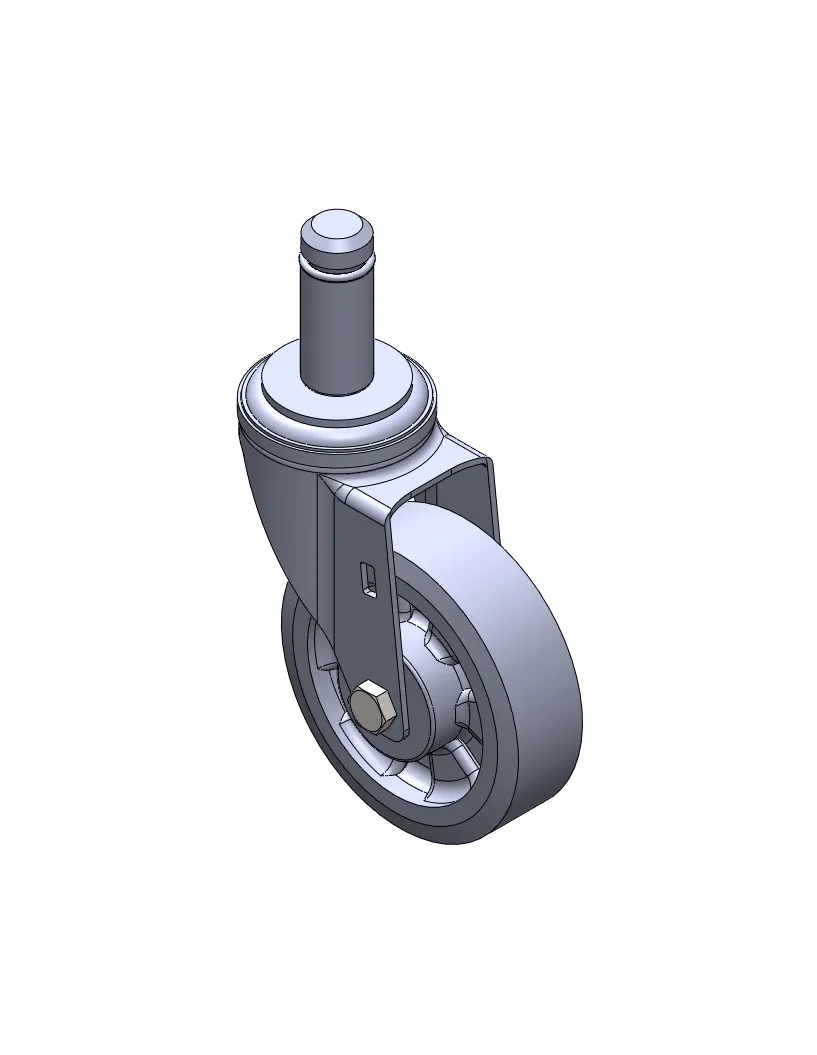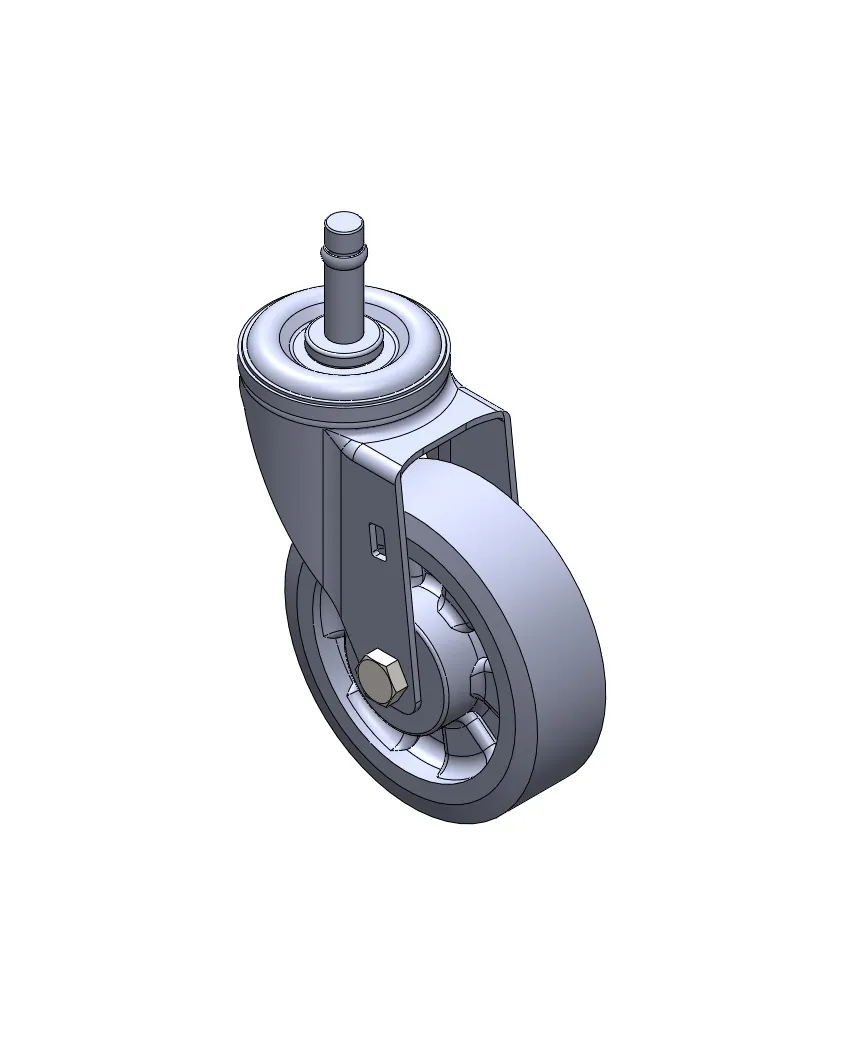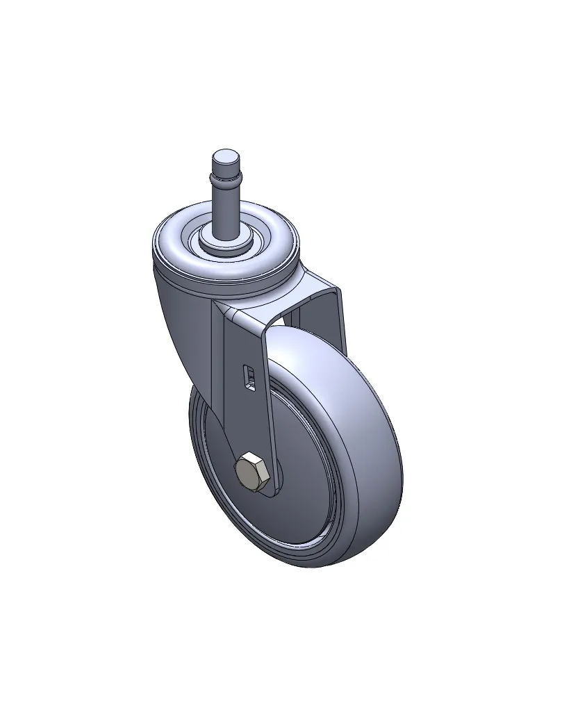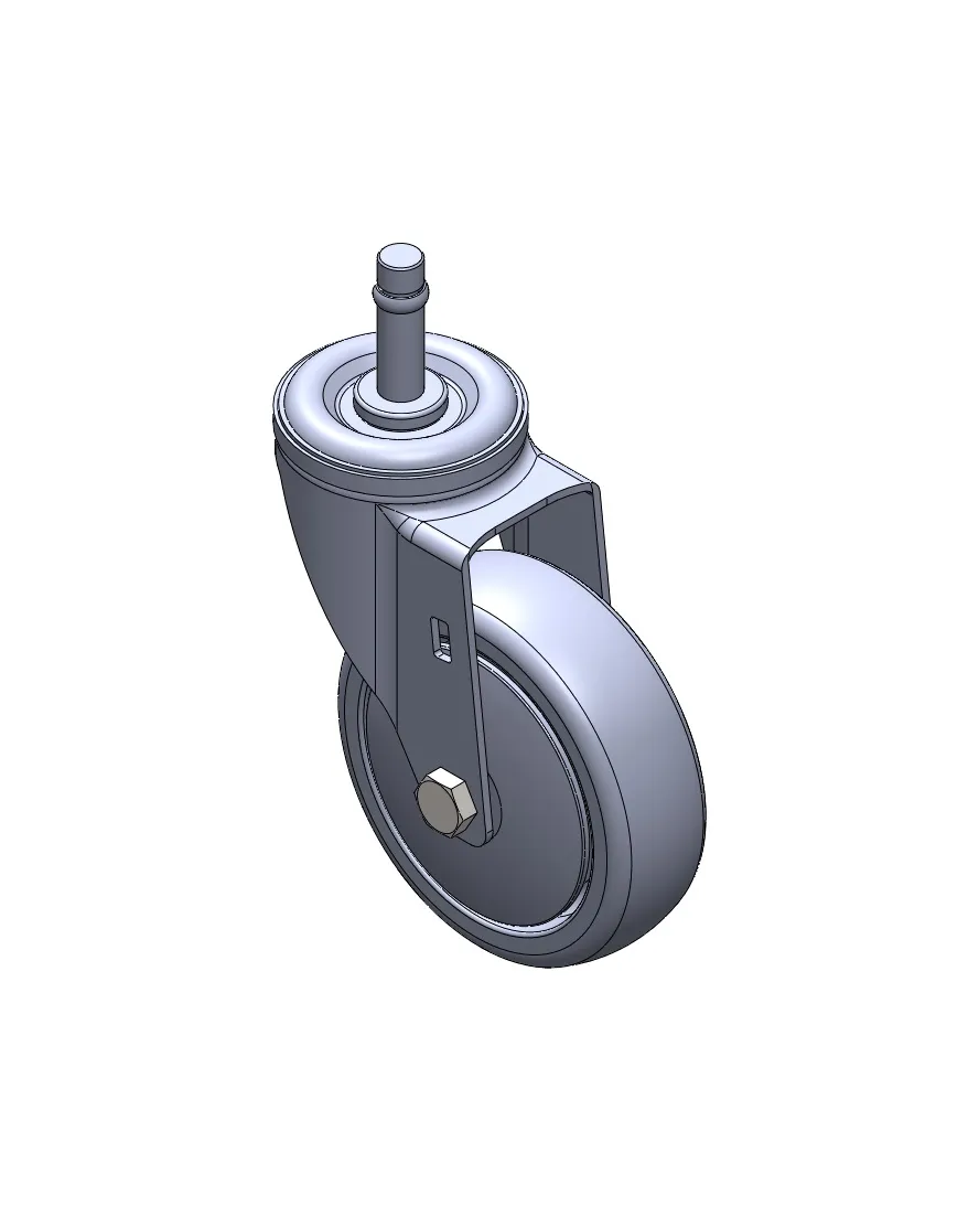 活動式腳輪,插心鉚合沖壓腳架—Ø28x45L 表面鍍鋅,插心式安裝裝置,M8孔 耐衝擊聚丙烯輪芯,熱塑性彈性體(TPR)輪面 深灰色,輪子—中管式。