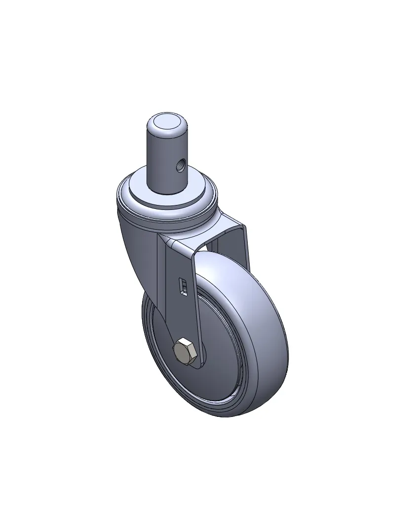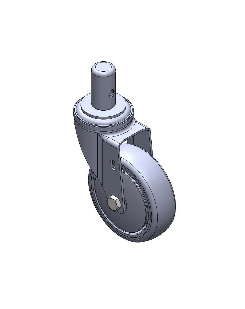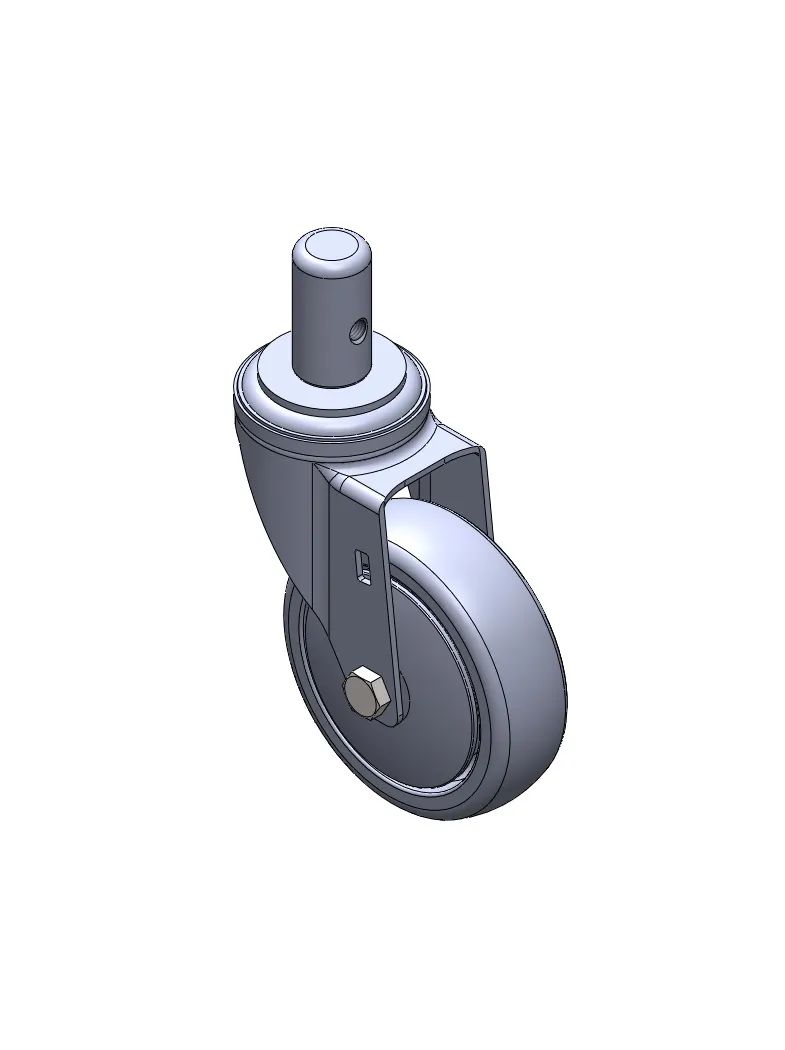 活動式腳輪,插心鉚合沖壓腳架—Ø24x45L 表面鍍鋅,插心式安裝裝置,M8孔 耐衝擊聚丙烯輪芯,熱塑性彈性體(TPR)輪面 深灰色,輪子—中管式。