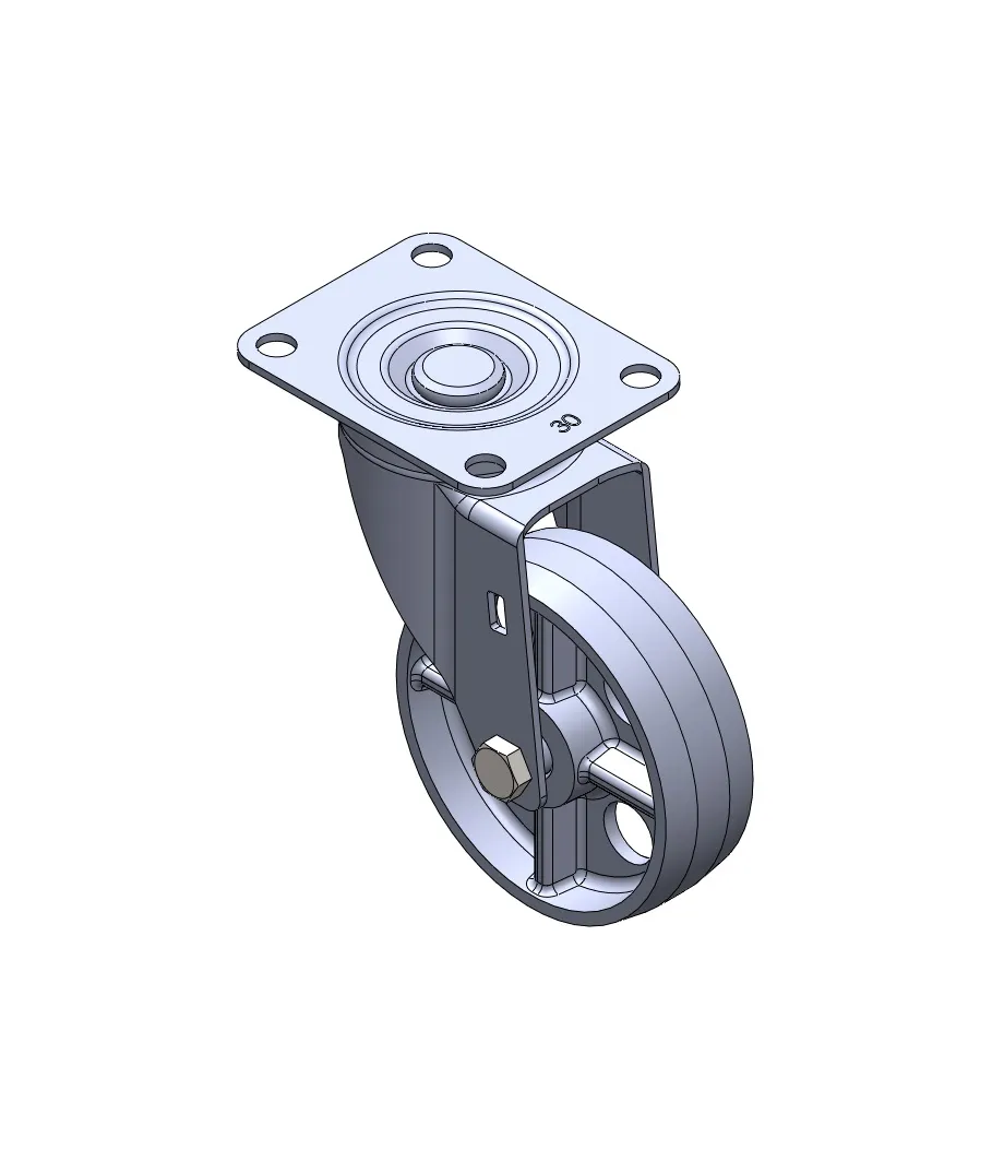 活動式腳輪,底板鉚合沖壓腳架—高級孔 表面鍍鋅,底板式安裝裝置 鑄鐵輪芯、輪面 黑色,輪子—中管式。
