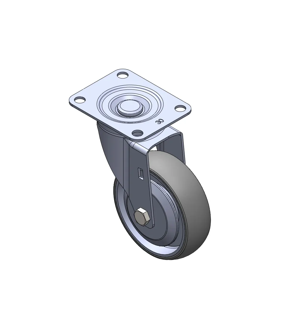 活動式腳輪,底板鉚合沖壓腳架—儀器孔 表面鍍鋅,底板式安裝裝置 耐衝擊聚丙烯輪芯,熱塑性彈性體(TPR)輪面 深灰色,輪子—中管式。