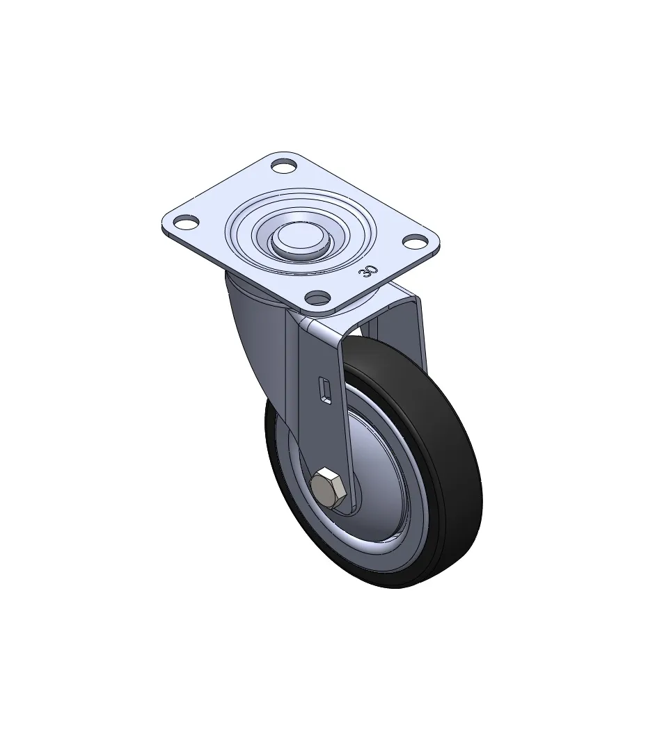 固定式腳輪,一體成型沖壓腳架—高級孔 表面鍍鋅,底板式安裝裝置 耐衝擊聚丙烯輪芯,熱塑性彈性體(TPR)輪面 珠光深灰色,輪子軸承—精密滾珠