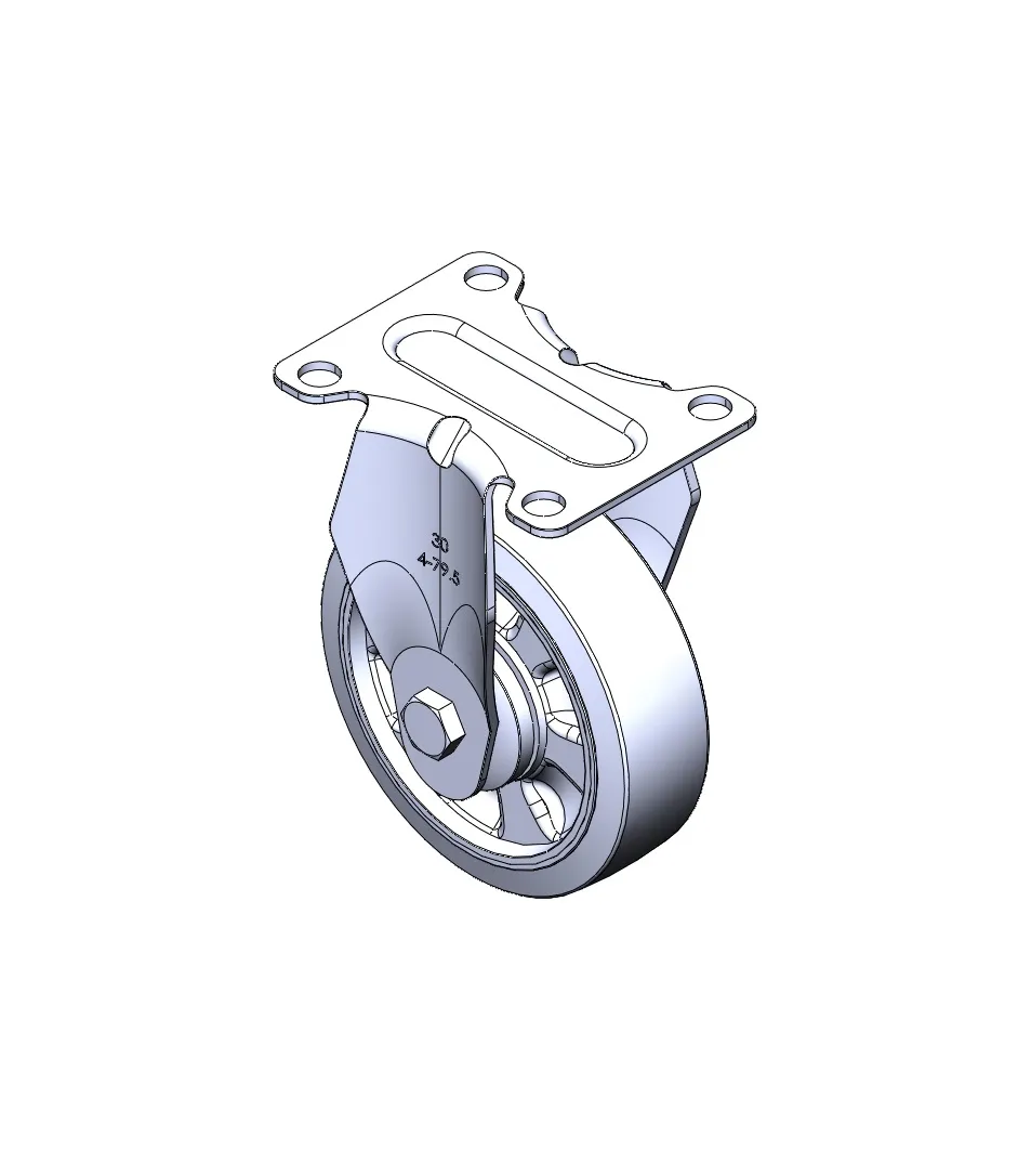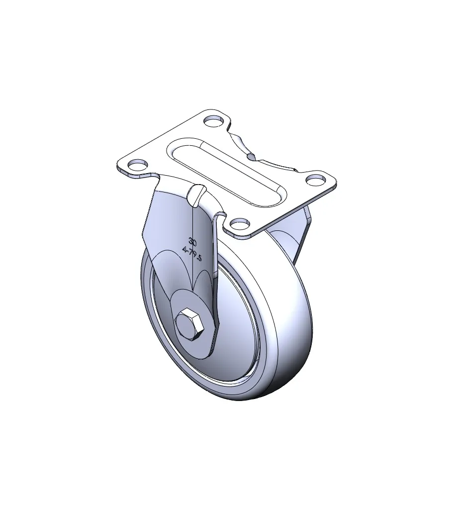 固定式腳輪,一體成型沖壓腳架—儀器孔 表面鍍鋅,底板式安裝裝置 耐衝擊聚丙烯輪芯,熱塑性彈性體(TPR)輪面 深灰色,輪子軸承—精密滾珠。
