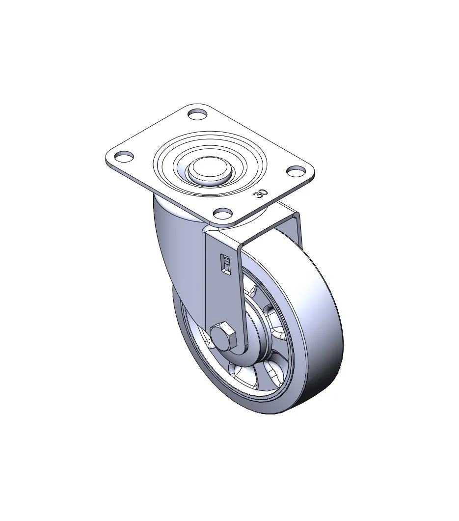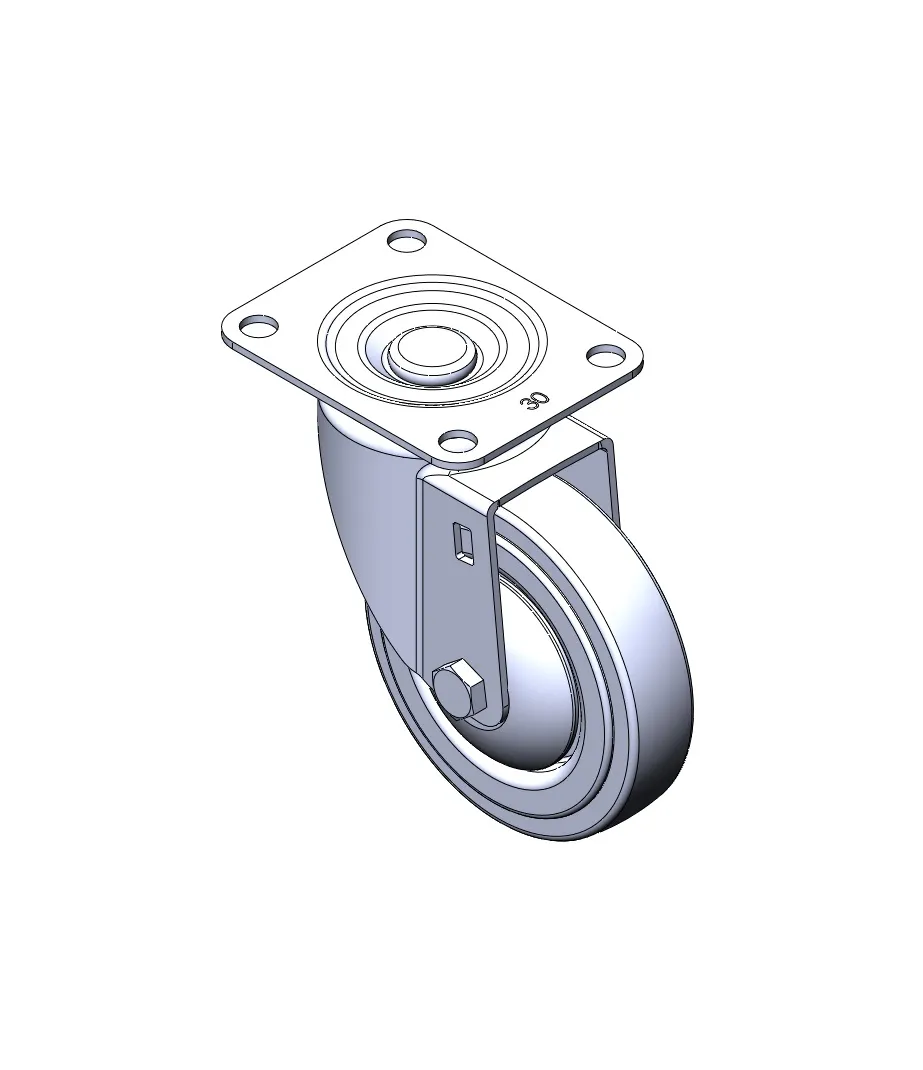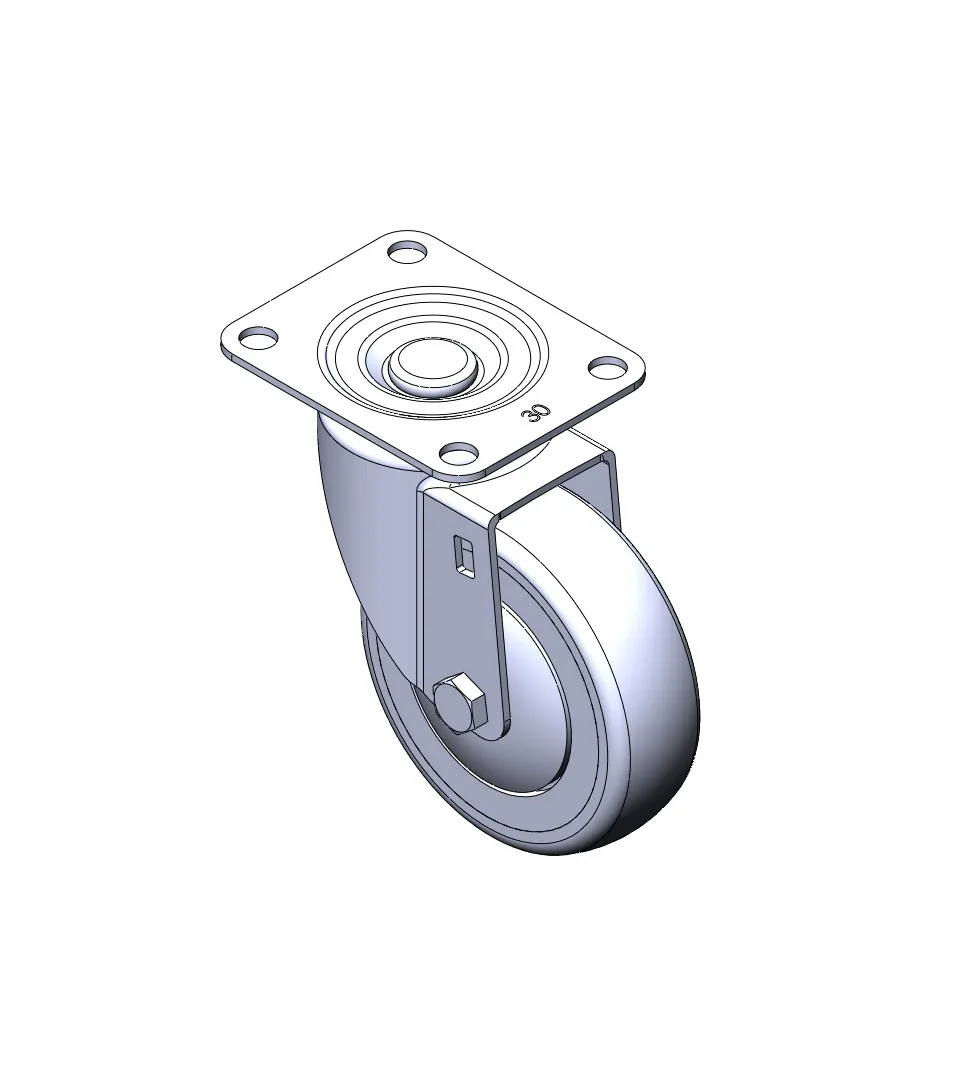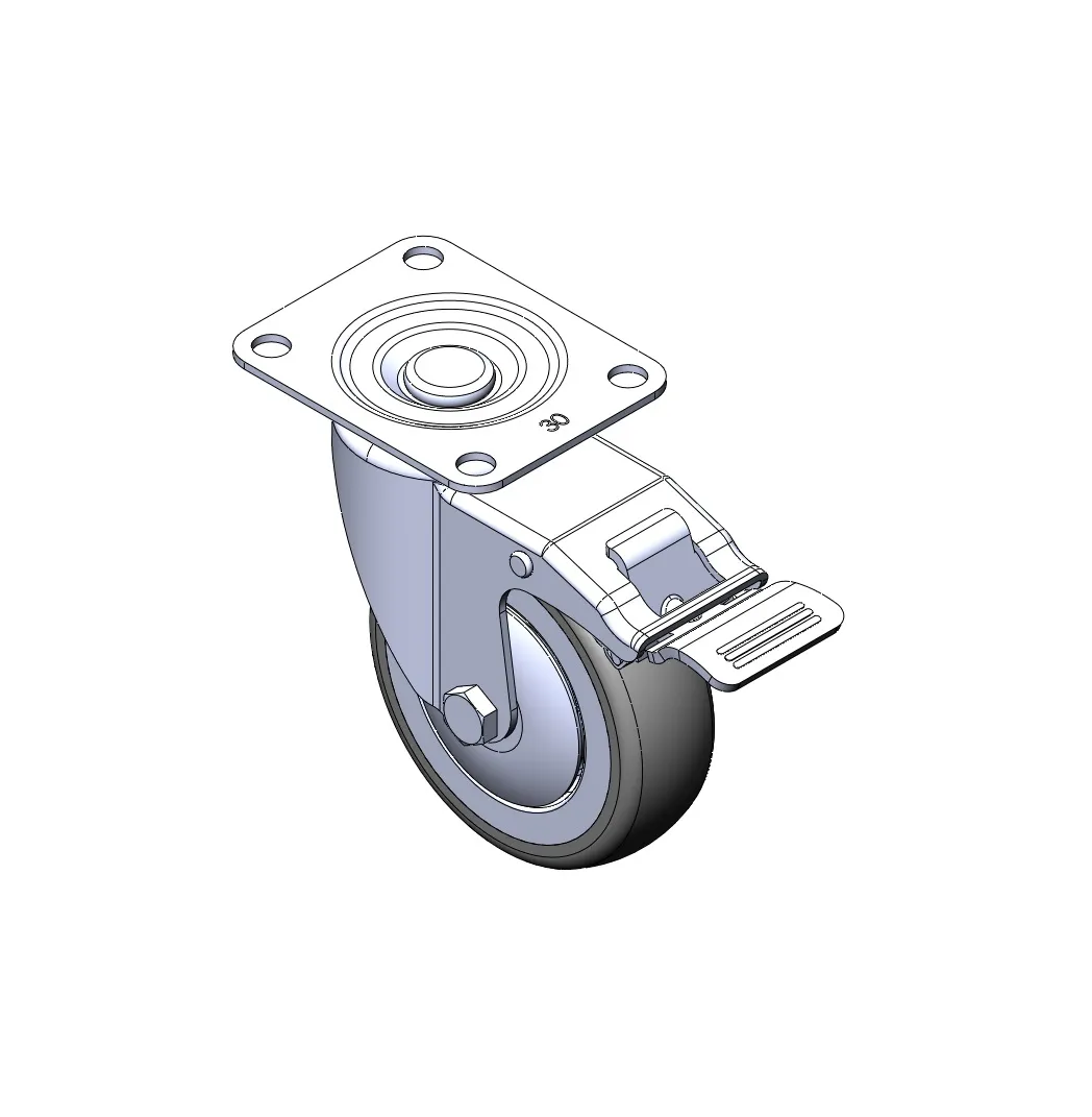 配有雙煞式,鎖定系統的腳輪。底板鉚合沖壓腳架—高級孔 表面鍍鋅,底板式安裝裝置 加強式耐衝擊聚丙烯輪芯,熱塑性彈性體(TPR)輪面 深灰色,輪子軸承—精密滾珠。