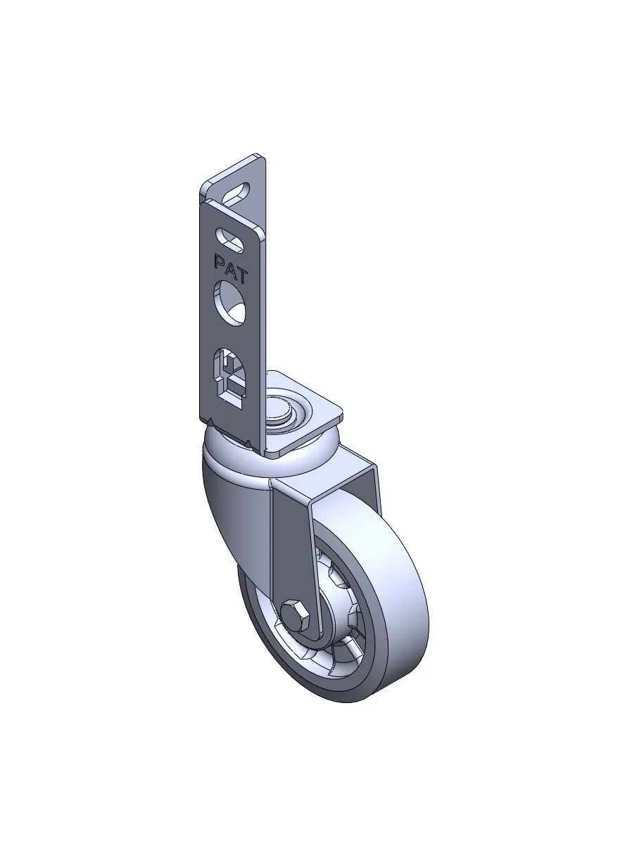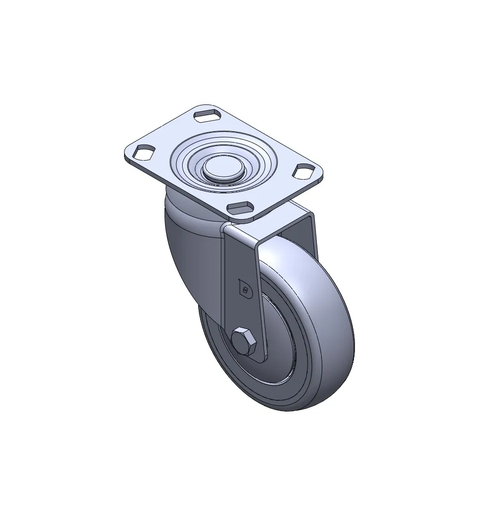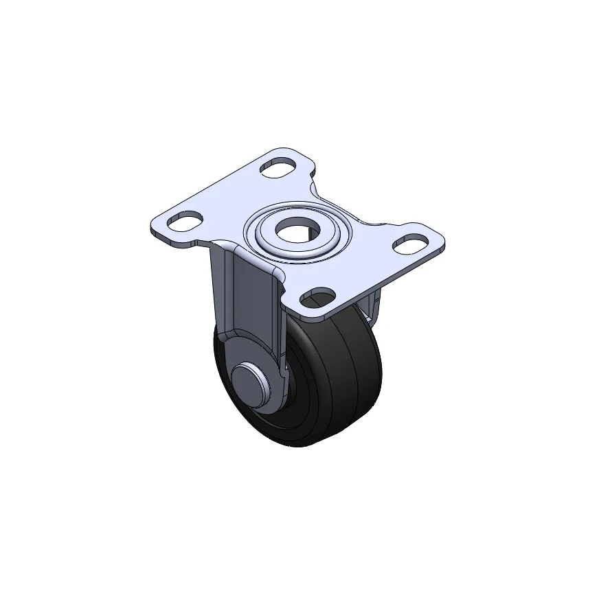 活動式腳輪,底板鉚合沖壓腳架。 表面鍍鋅,角鐵底板式安裝裝置 加強式耐衝擊聚丙烯輪芯,熱塑性彈性體(TPR)輪面 深灰色,輪子軸承—精密滾珠。
