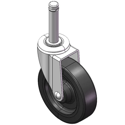 配有單煞式鎖定系統的腳輪。底板鉚合沖壓腳架—D型孔