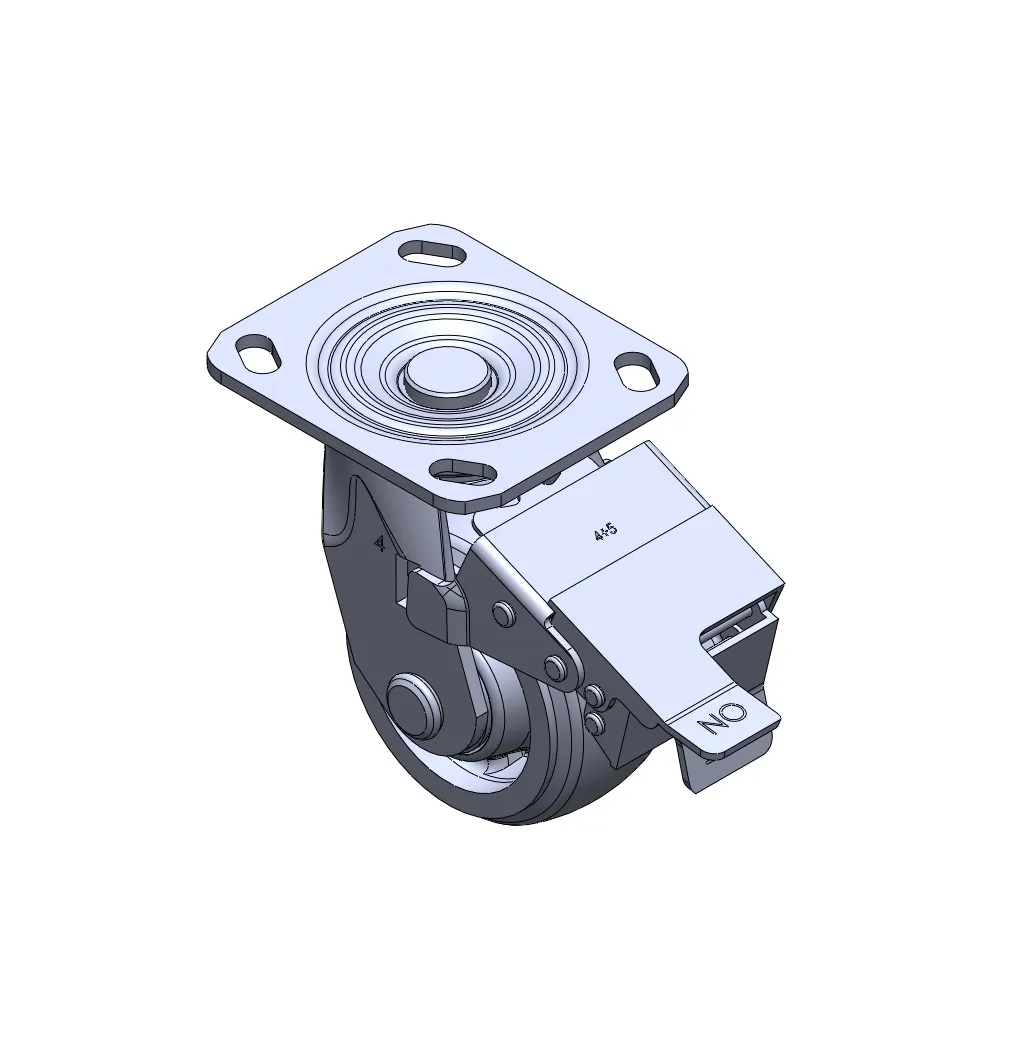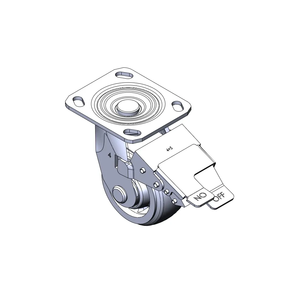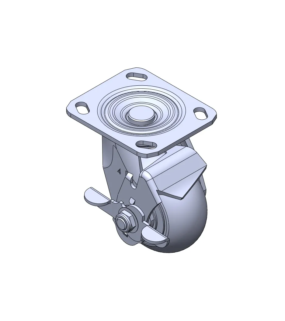 配有側(輪)煞式,鎖定系統的腳輪。焊接鋼板架 表面鍍鋅,底板式安裝裝置 耐衝擊聚丙烯輪芯,熱塑性彈性體(TPR)輪面 灰色,輪子軸承—精密長珠。