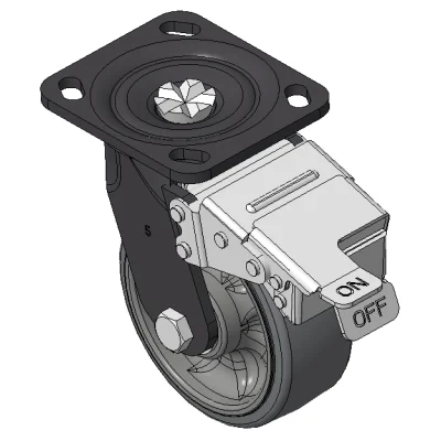 側煞式的腳輪,焊接鋼板架,表面黑漆